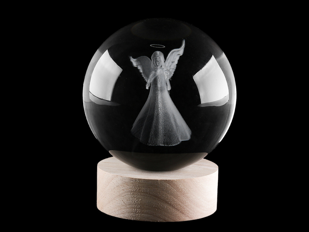 Svítící LED skleněná koule vnese klidnou a pohodovou atmosféru do každého interiéru. Světlo je v příjemném teplém odstínu, tlumené. Uvnitř koule najdete různé laserově gravírované 3D motivy, které díky světlu vyniknou v celé své kráse.