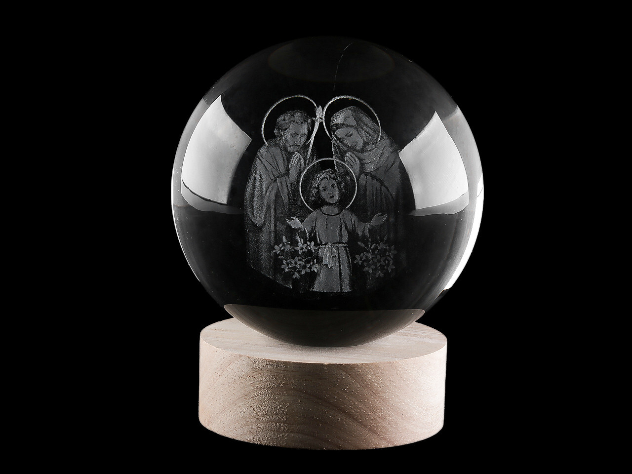 Svítící LED skleněná koule vnese klidnou a pohodovou atmosféru do každého interiéru. Světlo je v příjemném teplém odstínu, tlumené. Uvnitř koule najdete různé laserově gravírované 3D motivy, které díky světlu vyniknou v celé své kráse.