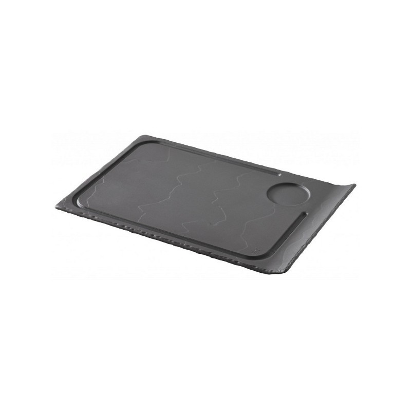 Basalt talíř obdélný s drážkou spojuje půvab břidlice s výhodami porcelánu. Jeho přírodní vzhled zdokonalí každé jídlo (maso, burgery, ryby apod.) a velikost talíře vám dovolí současně podávat i přílohy jako špízy, vařenou zeleninu, hranolky a spoustu dalších. Potěší vás také jeho praktičnost - zvednutá drážka pomáhá k lepší uchopení a jednoduššímu servírování.