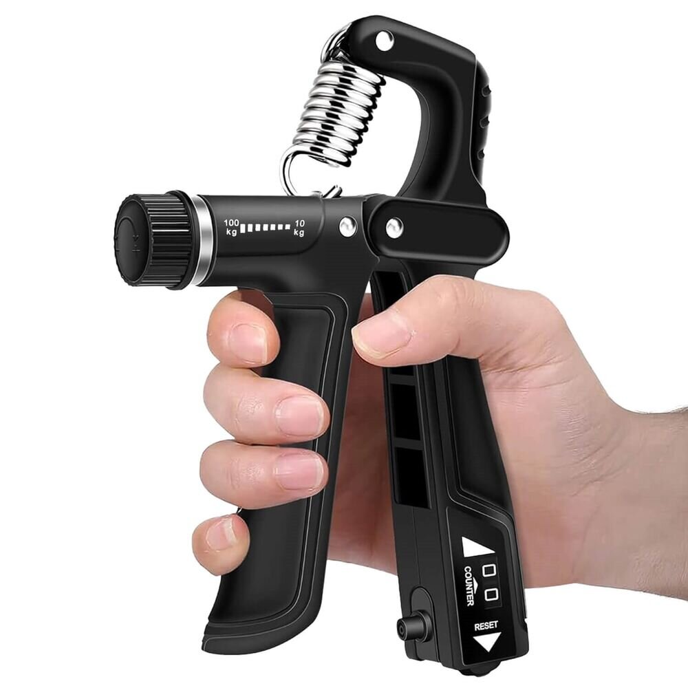 Praktická pomůcka pro posílení úchopu a svalů ruky. Plynule nastavitelný odpor 10-100 kg umožňuje individuální přizpůsobení tréninku. Mechanické počítadlo sleduje počet stisků pro lepší kontrolu výkonu. Ergonomický tvar a měkčený úchop zajišťují pohodlí při cvičení. Odolná konstrukce garantuje dlouhou životnost. Díky kompaktní velikosti se snadno vejde do tašky a je ideální na cvičení kdekoliv.