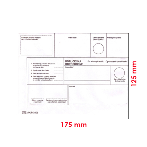 Doručenkové obálky formátu B6 (125x176 mm) - opakované doručení jsou priamoprepisujúce a jsou vhodné pro automatické zpracování na poštovních třídících linkách. Obálky mají platný atest od české pošty. Balení 25 ks. číst celé