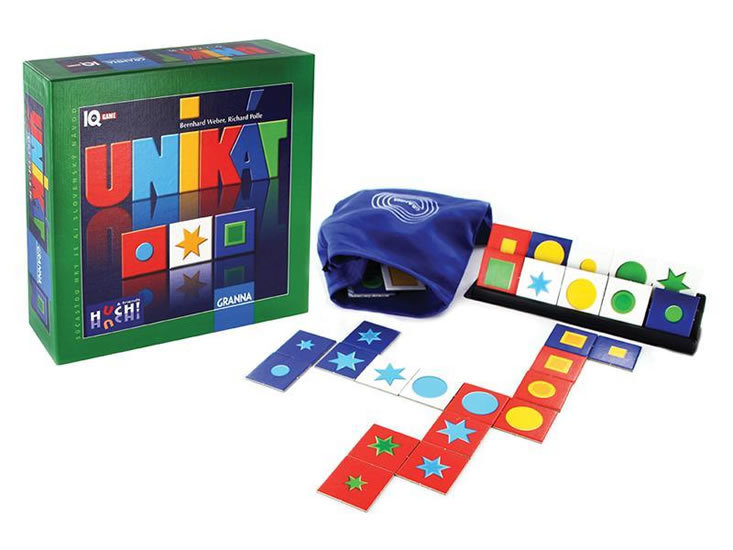 Strategické plánování, logické myšlení, postřeh a… skvělá zábava je tu! Skvělá hra pro celou rodinu. Hráči postupně pokládají na stůl čtverce s geometrickými obrazci. Podmínkou je, aby se vedle sebe ležící čtverce lišily pouze v jednom znaku: tvaru obrazce, jeho barvě, velikosti nebo barvě pozadí. Vyhrává hráč, který se jako první zbaví všech svých čtverců. Jednoduchá pravidla, stačí jen otevřít krabičku a začít hrát. Rozvíjí schopnost koncentrace, strategického myšlení a rychlé reakce v závěrečné fázi hry. Návod v češtině i ve slovenštině. Skvělá logická hra pro 2 až 4 hráče ve věku od 8 let rozvíjí schopnost koncentrace, strategického myšlení a rychlé reakce v závěrečné fázi hry. Vyhrává totiž ten, kdo má nejlepší postřeh, pozorovací a kombinační schopnosti, dokáže šikovně předvídat následující tahy a správně se rozhoduje. Hráči postupně pokládají na stůl čtverce s geometrickými obrazci. Podmínkou je, aby se vedle sebe ležící čtverce lišily pouze v jednom znaku: tvaru obrazce, jeho barvě, velikosti nebo barvě pozadí. Vítězem se stává hráč, který se jako první zbaví všech svých čtverců. Jednoduchá pravidla, stačí jen otevřít krabičku a začít hrát. Obsah balení: 81 karet 4 stojánky na karty pytlík český a slovenský návod