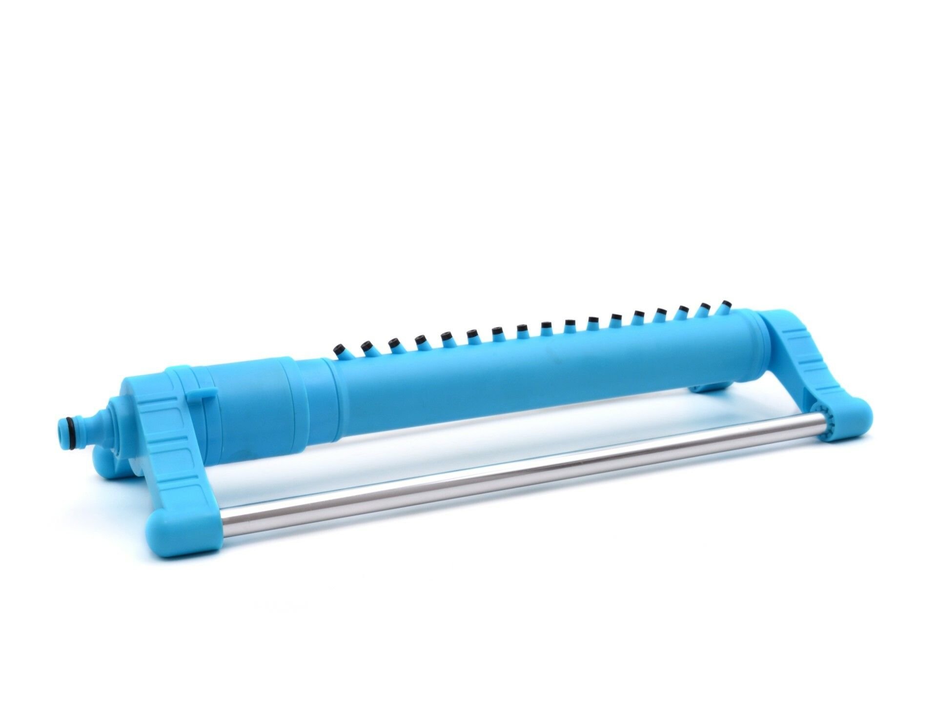 Výkyvný zavlažovač vyrobený z vysoce kvalitního plastu a hliníku. Plynule nastavitelné postřikovací pole je ideální pro zavlažování obdélníkových ploch, v závislosti na tlaku vody až do 250 m2. Je vybaven 17 výstupními otvory.