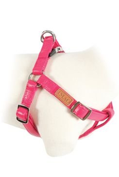 Nastavitelný postroj z umělé kůže opatřený kovovými kroužky a plastovou sponou se stříbrnou úpravou a logem "Zolux".