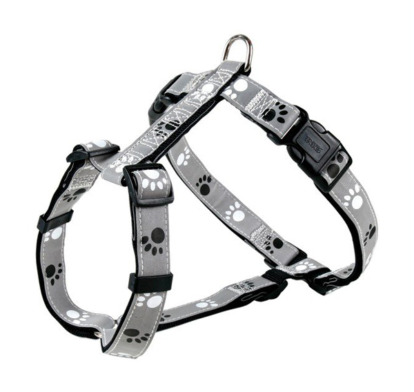 Tento postroj je vyroben z odolného nylonového materiálu doplněného o plastové části, což zaručuje jeho dlouhou životnost a snadnou údržbu. Hoďte ho bez obav svého čtyřnohého přítele - postroj je navržen tak, aby perfektně seděl díky nastavitelnosti obvodu krku a hrudníku v rozmezí 30 až 40 cm. Stříbrná reflexní barva s černými tlapkami navíc výrazně zvyšuje bezpečnost za šera a tmy, takže vám i vašemu psovi neunikne žádné auto ani cyklista.