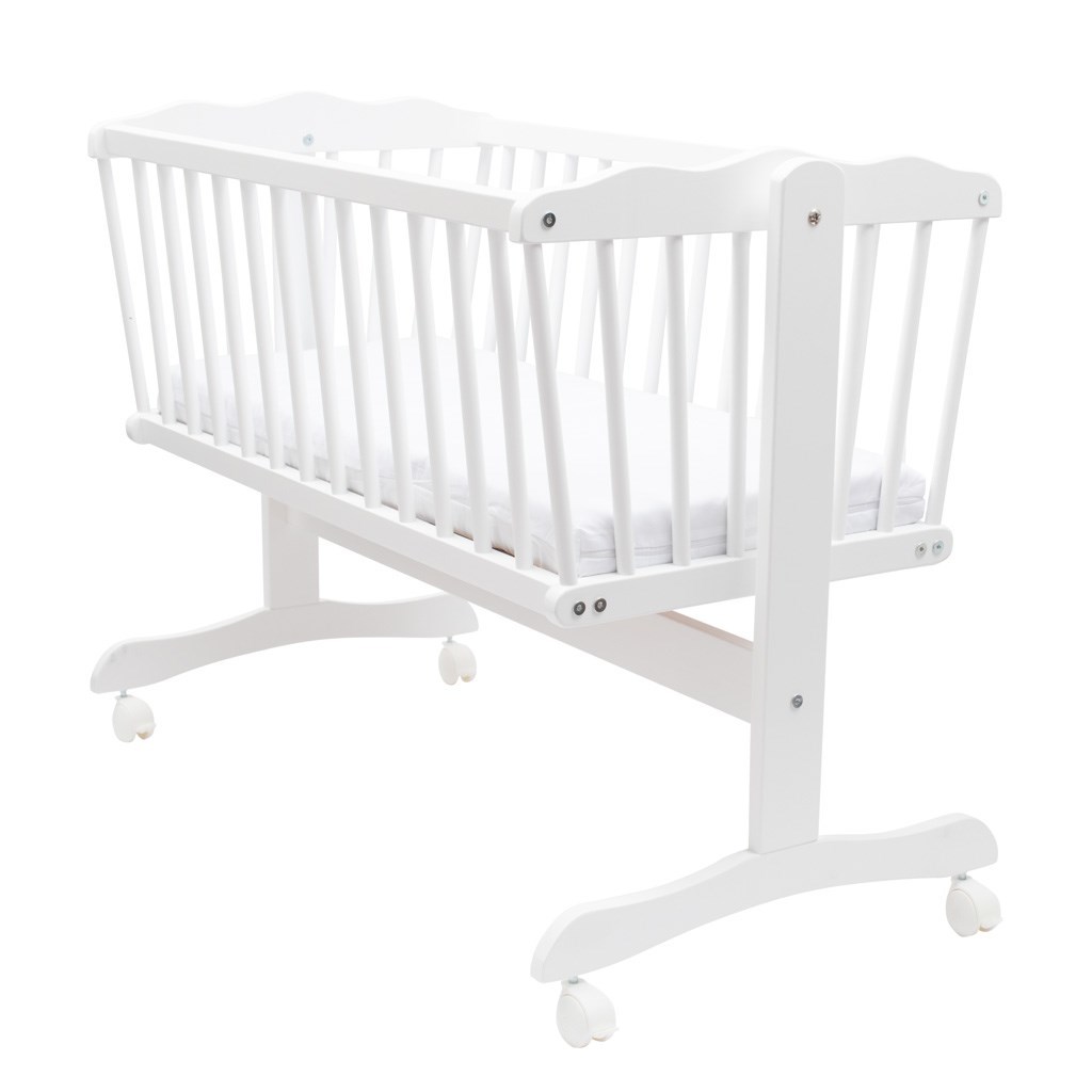 Naše kolébka české značky New Baby je vyrobena z tvrdého bukového dřeva, což zaručuje trvanlivost nábytku a minimalizuje opotřebení. Je pevná, stabilní a je vyrobena s důrazem na každý detail. Je vybavena kolečky s brzdou, díky čemuž se dá snadno přemisťovat, a proto můžete mít své miminko stále na očích. Je vybavena tzv. kolébkovým zámkem - pokud nechcete, aby se kolébka houpala, lze houpání "zamknout".