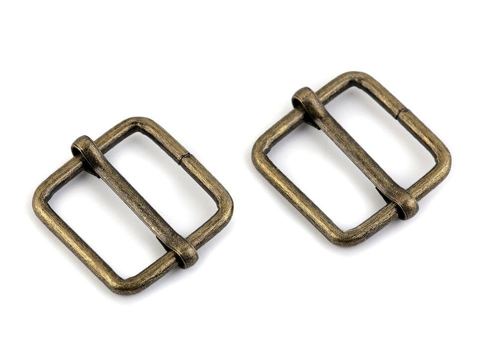 Posunovač na popruhy šíře 20 mm čtvercový - 50 ks - 3 staromosaz