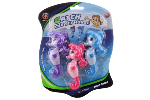 Zábavná hračka do vody - potápění mořští koníci. Materiál plast. Baleno na blistru. Rouměry balení cca 17x20x2,5 cm. V balení 3 ks koníků o velikosti cca 10 cm. Doporučený věk 6+ číst celé