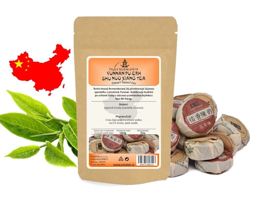 Tmavý čaj China Yunnan Pu-erh Shu Nuo Xiang Tea - 10 x 5 g
