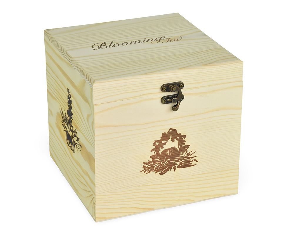 Dřevěná krabice: Ušlechtilá dřevěná krabice slouží jako dárkové balení nebo úložný prostor pro čajové květy. Dodává celému setu nádech luxusu a elegance.