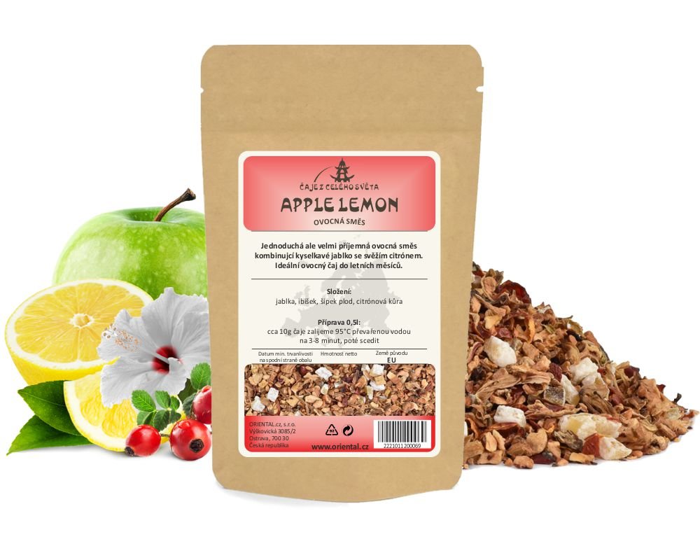 Jednoduchá ale velmi příjemná ovocná směs kombinujcí kyselkavé jablko se svěžím citrónem. Ideální ovocný čaj do letních měsíců. Neobsahuje žádné přidané konzervanty a barviva.Složení: jablka, ibišek, šípek plod, citrónová kůraDoporučená příprava 0,5 litru čaje: