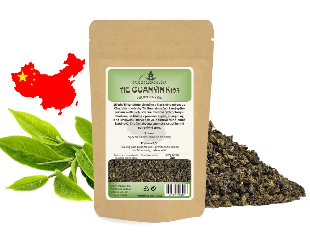 Střední třída tohoto slavného a klasického oolongu z Číny. Všechny druhy Tie Guanyin se řadí k nejlepším sortám světlejších, středně zoxidovaných oolongů. Produkují se hlavně v provincii Fujian, Kuang-tung a na Tchajwanu. Barva nálevu je žlutavá, vůně jemně květinová. Chuť je lahodná, aromatická s příjemně natrpklými tóny.