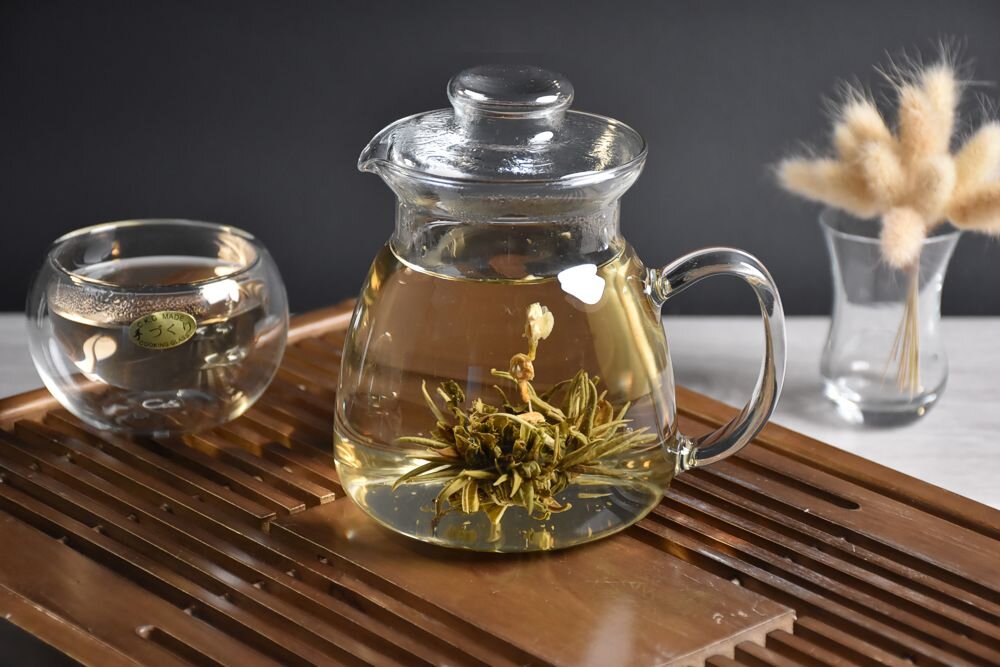 Kvetoucí čaj potěší nejen chuť a čich, ale i zrak. Kvalitní lístky čínského čaje ručně šité s květem rosltiny nejčastěji do podoby malé kuličky. Původně se tyto unikátní čaje vyráběly v provincii Yunnan u čínsko-laoských a čínsko-vietnamských hranic. Vzhledem k rostoucí poptávce na americkém a evropském trhu se dnes vyrábějí také v jiných provinciích. Z jednoho kusu připravíte cca 1l-1,5l čaje.