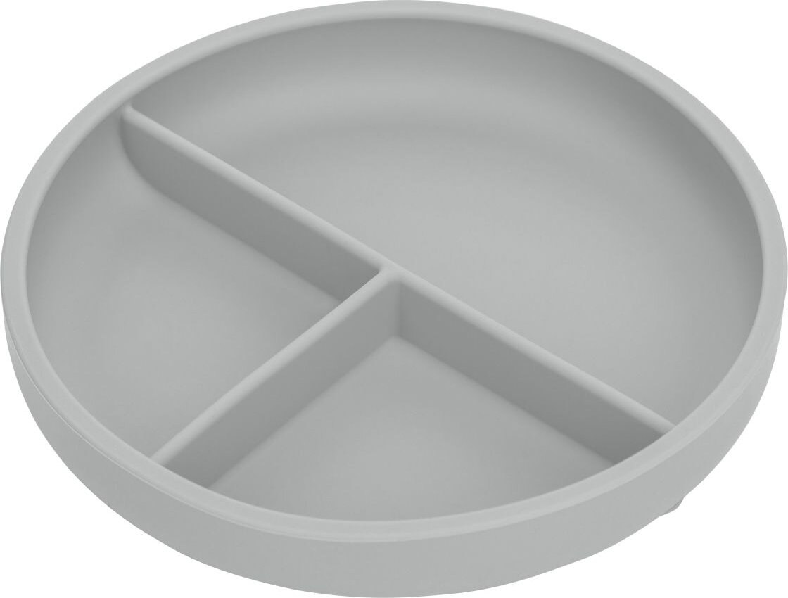 Silikonový talířek v moderní šedé barvě. Vlastnosti: