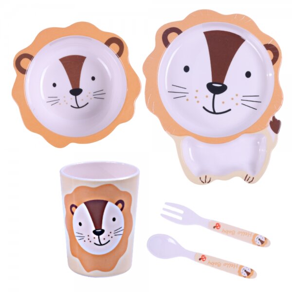 Sada nádobí z melaminu pro nejmenší - elegantní, bezpečná a roztomilá sada se lvem.