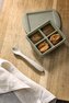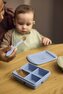 Každá miska má štyri priehradky s celkovým objemom 270 ml a je vybavená vzduchotesným vekom, ktoré udrží jedlo čerstvé. Vďaka pružnému silikónovému materiálu sa zmrazené porcie ľahko vyberajú, zatiaľ čo odolné prevedenie je ideálne na každodenné používanie. Vyrobené sú zo 100 % silikónu v potravinárskej kvalite s certifikátom LFGB. Misky sú bezpečné na používanie v mrazničke, mikrovlnnej rúre aj umývačke riadu (pred ohrevom alebo umývaním treba odstrániť veko).