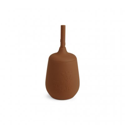 NUUROO Adita Silikonový hrneček s brčkem Caramel café