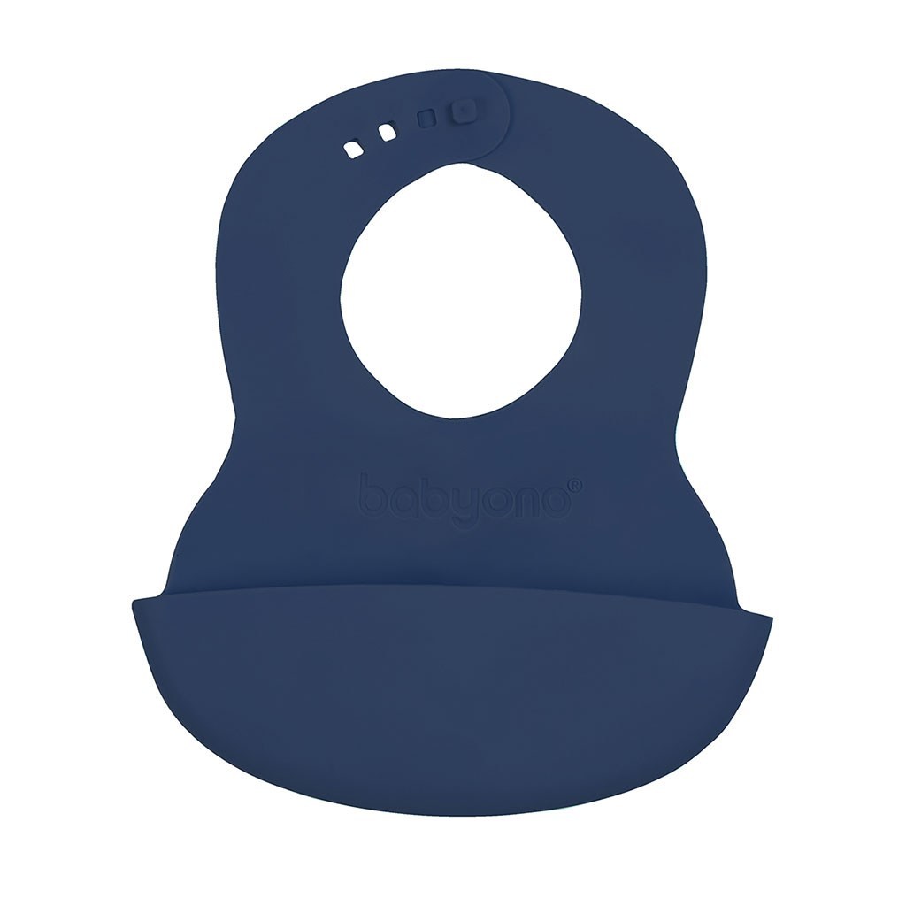 Nastavitelný plastový bryndák s kapsičkou Baby Ono tmavě modrý