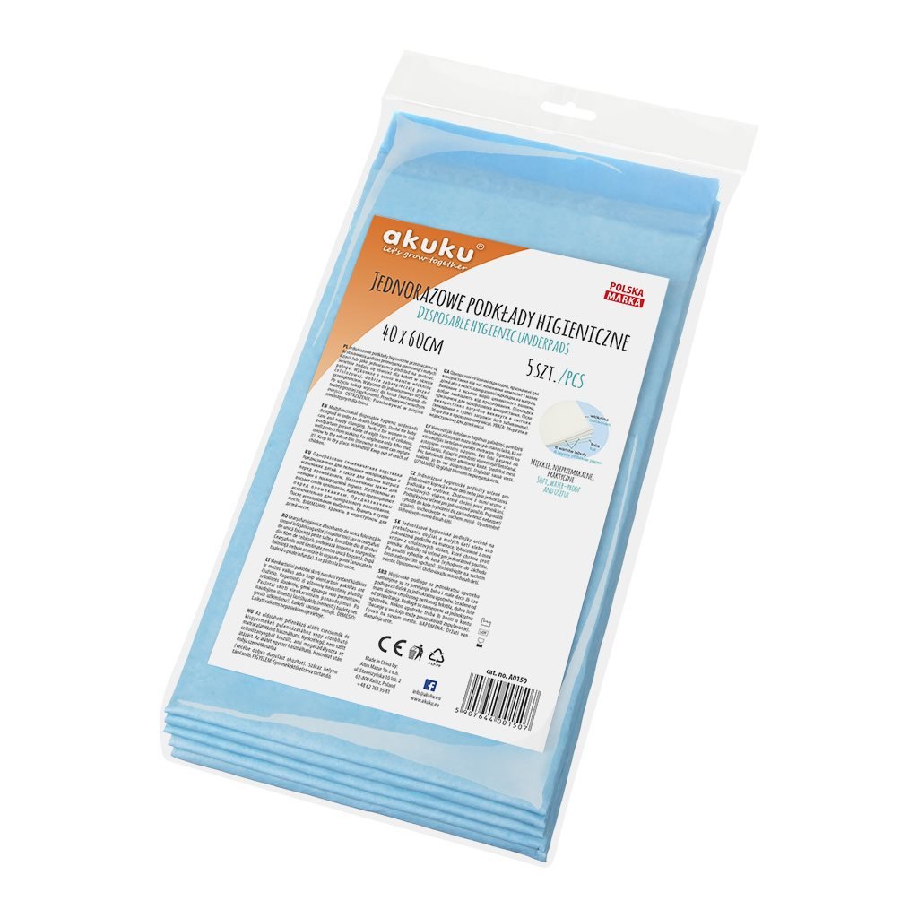 Jednorázové hygienické podložky Akuku. Rozměr: 40x60 cm. Balení obsahuje 5 kusů. číst celé