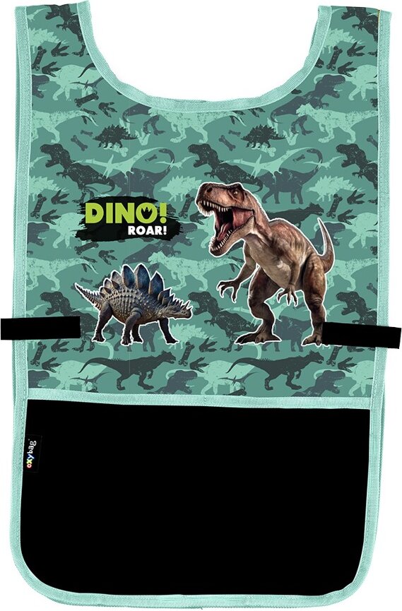 Chraňte oblečení svých dětí při výtvarných aktivitách stylově a prakticky! OXYBAG pracovní zástěra ve tvaru ponča s motivem dinosaura je ideální volbou pro kreativní malé umělce.