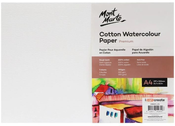 Mont Marte akvarelový papír Premium, 100% bavlna, 300 g/m2, A4, č.0127, 5 listů