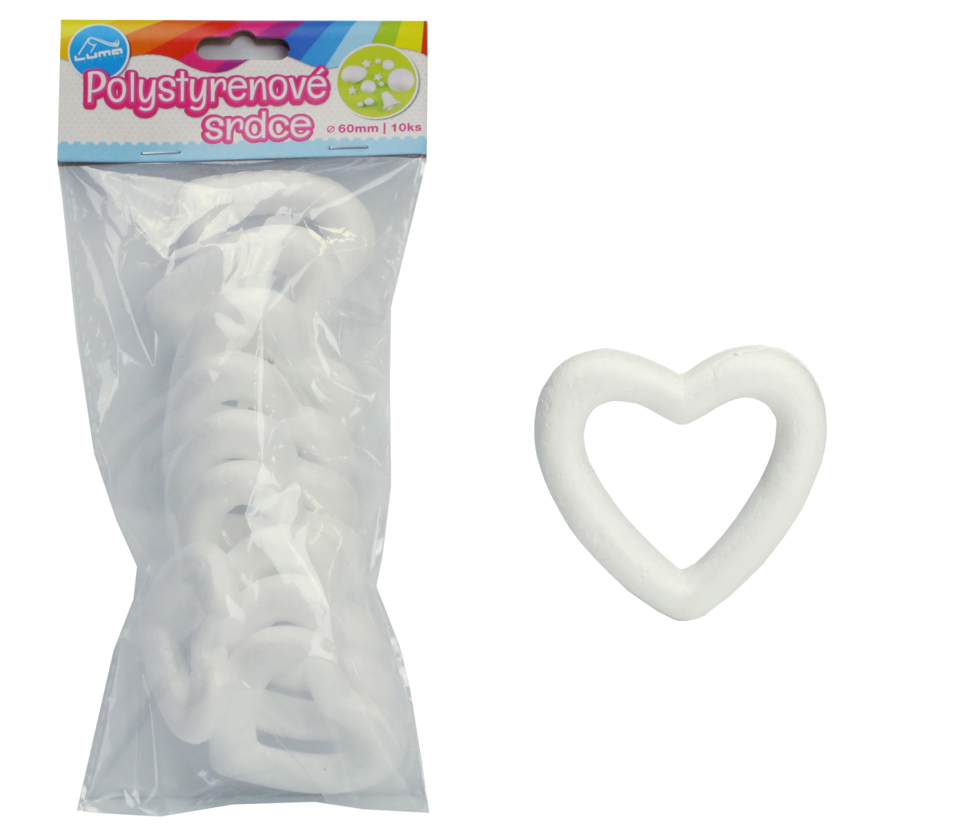 Polystyren - Srdce obrys 60mm, 10ks LUMA