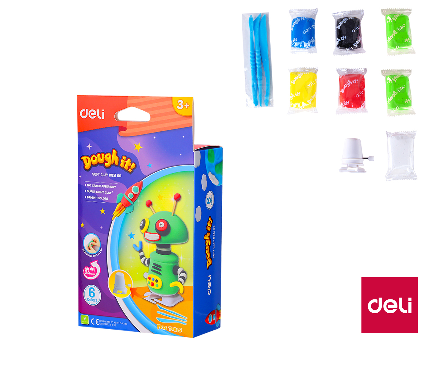 Plastelína pěnová samotvrdnoucí 6 barev DELI ED85100 robot zelený