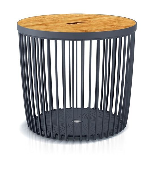 - Univerzální využití: Koš lze použít na ukládání i jako odkládací stolek díky bambusovému víku.