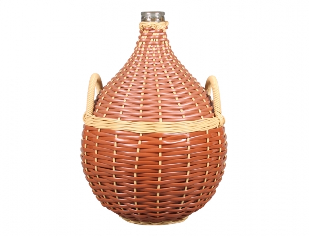 Opletený demižon se používá k uskladňování a převozu různých tekutin ( vody, vína, slivovice, moštů). Má baňatý tvar a úzké hrdlo. Z důvodů ochrany a pohodlnější manipulace je opletený.Je odolný proti poškození a je s ním snazší manipulace. Barva: světle hnědá s tamvě hnědou a béžovou. Objem: 20...