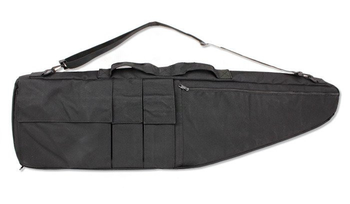 Wykonany z tkaniny nylonowej pokrowiec na długą broń - max 125cm. Zapinany na zamek. Kieszenie na froncie do transportu magazynków