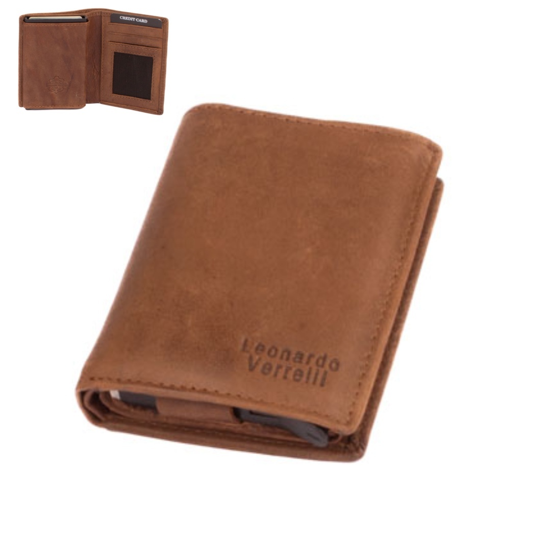 Leonardo Verrelli Hnědé kožené luxusní pouzdro na karty