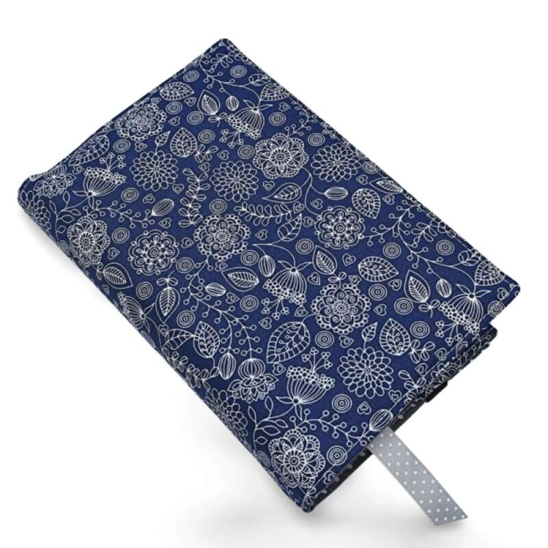 Nastavitelný obal na knihu v různých velikostech - Folk Flowers - modrá - velikost XS