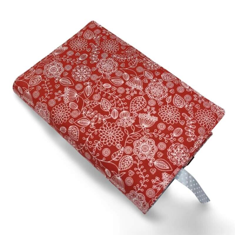 Nastavitelný obal na knihu v různých velikostech - Folk Flowers - červená - velikost L