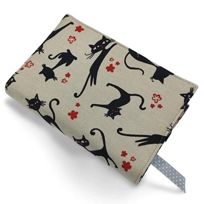 Nastavitelný obal na knihu v různých velikostech - Kočky na režné - velikost L - pro hardcovery B5, na výšku knihy 24,5 cm