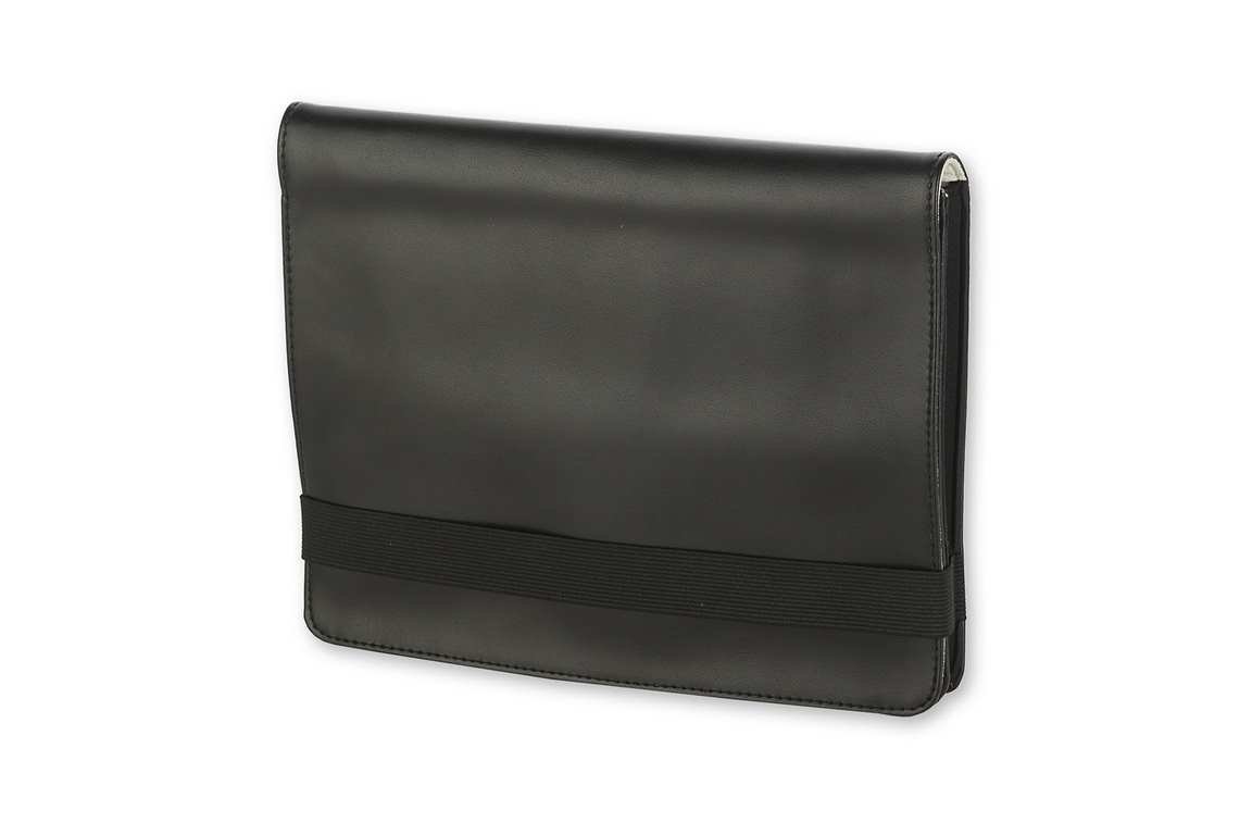 Pouzdro na notebook v imitaci drobně strukturované kůže, doplněné pružným materiálem po stranách. Inspirované designem zápisníků Moleskine, včetně pružné pásky. Uvnitř kontrastní béžová podšívka. Vhodné pro tablety velikosti 10. Rozměry 26 x 19,5 x 3 cm. číst celé