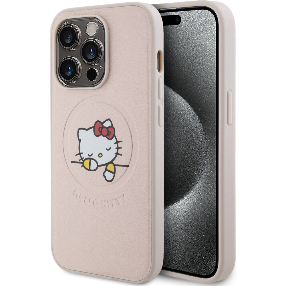 Hello Kitty PU Kitty Asleep Logo MagSafe Kryt iPhone 15 Pro růžový