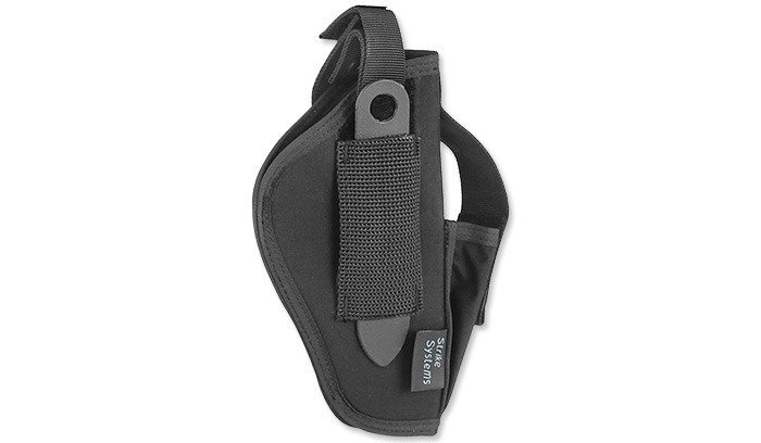 Mocowana do pasa kabura ze zintegrowaną kieszenią na magazynek. Dzięki obustronnym montażom może być używana zarówno przez osoby prawo jak i leworęczne.