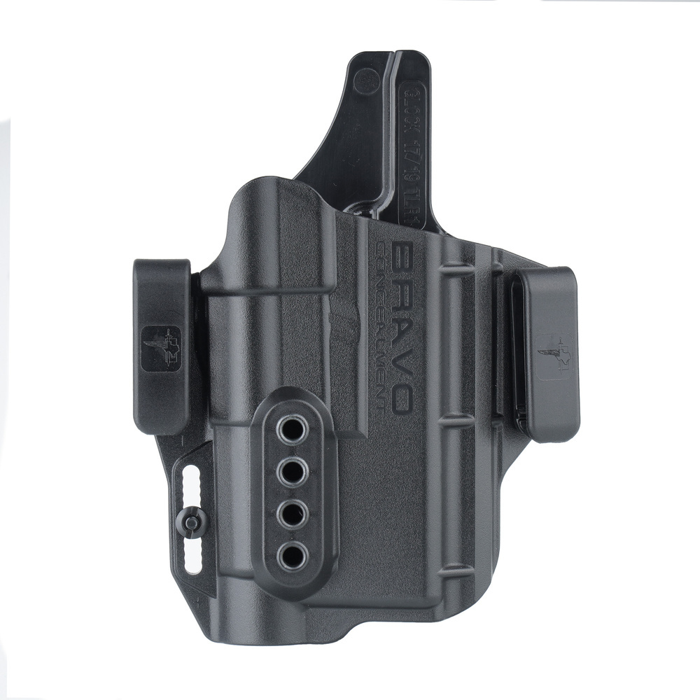 Finalnie, aby uzyskać prawidłowe trzymanie kabury, użytkownik musi używać połączonej broni krótkiej z latarką na broń, w tym wypadku jest to Streamlight TLR-1 HL. Firma Bravo Concealment tworzy swoje kabury na podstawie faktycznych modeli broni palnej z zachowaniem tolerancji produkcji na poziomie poniżej 100 µm. Co przekłada się na wyjątkowo dobrze spasowaną konstrukcję do pistoletów.