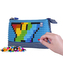 Penál, který při troše snahy připomíná taštičku, má dvě různé barvy, a to královskou modrou, která zaujímá zhruba tři pětiny povrchu celého penálu, a světlejší modrou zaujímající zbylé dvě pětiny povrchu celého penálu. Ta část, která má tu světlejší modrou, může podporovat kreativitu tím, že se na ní poskládají malé silikonové pixely různých barev, akorát mi nepřipadá penál dostatečně velký na větší obrazce.