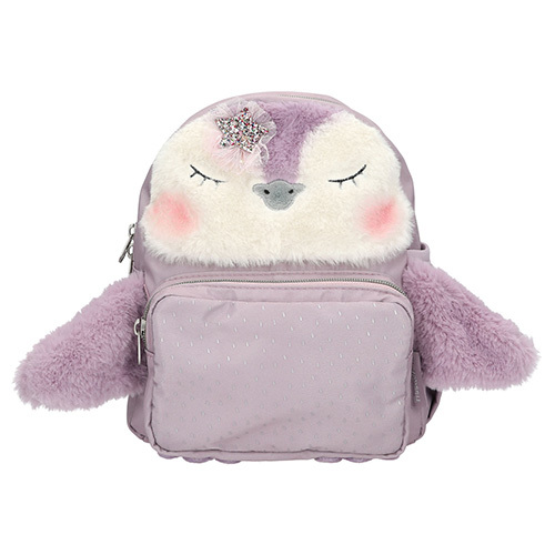 Krásný světle fialový mini batůžek s roztomilým tučnáčkem oblíbené značky Princess Mimi je vhodný pro volný čas, ale také do mateřské školky.Batůžek disponuje dvěma kapsami uzavíratelné na zip a boční kapsou na láhev. Hlavní kapsa je dvoukomorová. Ramenní popruhy jsou délkově nastavitelné a polstrované, pro pohodlné nošení.Nádherný dárek pro každou malou slečnu.Rozměry: 25 x 22 x 12 cm.