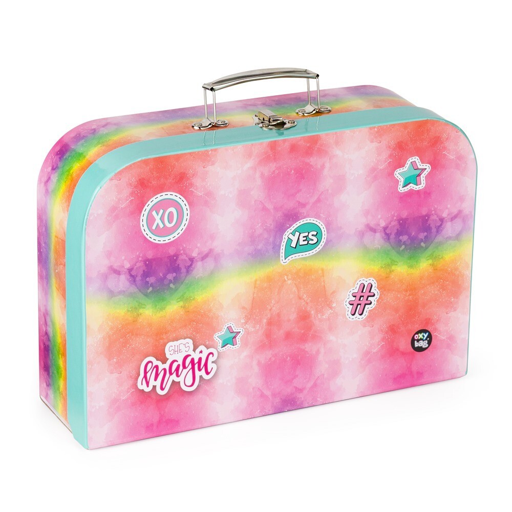 Dětský kufřík Oxybag Magic nabízí dostatek prostoru pro uložení všeho důležitého formátu A4, a proto je ideální na školní sešity, výkresy, pastelky či další kreativní potřeby. Díky praktickému madlu je snadné kufřík přenášet, což ocení jak děti, tak rodiče. Použitý materiál lamino zajišťuje pevnost a dlouhou životnost, doplněnou kovovým zámečkem a nýty pro bezpečné zavření. Design kufříku zároveň krásně oživí dětský pokoj a může sloužit i jako originální úložný prostor na hračky.