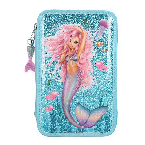 Penál s výbavou Fantasy Model Mořská panna, třípatrový, tyrkysový s glitry