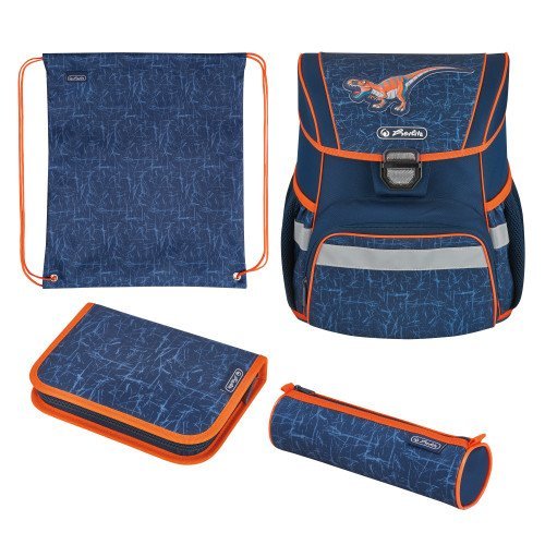 37x31x22cm, ergonomicky tvarované a prodyšné polstrování zad, nastavitelné ramenní popruhy, výškově nastavitelný hrudní pás, hlavní kapsa s prostorem pro knihy, boční kapsy s elastickými pásky, přední kapsa na zip, stabilní spodní deska, pohodlná rukojeť, zavírání Click lock, reflexní materiály Oralite, integrovaná odrazka v zámku. Hmotnost 950 g, objem 15 l. Výbava: penál 16 dílů, sáček na cvičky, kulaté pouzdro