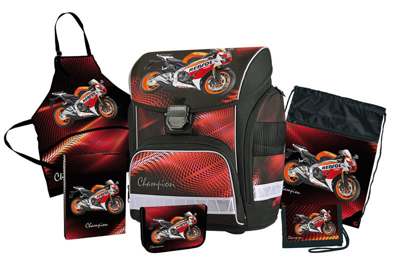 Set obsahuje : anatomický batoh, 1 patrový penál, sáček na cvičky, box na sešity A5, peněženka na krk, zástěrka. Popis jednotlivých položek setu: 1. Kvalitní, ergonomický a velmi odolný školní batoh je vybaven reflexními prvky a anatomicky tvarovanými zády s pevnou konstrukcí. Vnitřní uspořádání batohu: Skládá se ze 3 prostorných komor opatřených pevnými zipy, kam se pohodlně vejdou všechny školní pomůcky. Pevná vnitřní přepážka přehledně rozděluje vnitřní uspořádání. Hrudní pás - pro optimální rozložení zátěže na zádech s možností nastavení popruhů dle výšky dítěte. Při celkových rozměrech 370 x 320 x 220 mm váží batoh pouhý 1 kg. Objem aktovky je 17 l. Nosnost 6 kg. 2. Školní penál jednopatrový, prázdný s dvěma chlopněmi, o rozměru š.195 x v.35 x h.130mm 3. Školní sáček na cvičky vhodný pro žáky 1. stupně ZŠ vyroben z pevného, kvalitního materiálu. Rozměr sáčku na přezůvky 440 x 320mm. 4. Boxy na sešity, knihy a další školní pomůcky ve formátu A4 a A5. Boxy jsou laminované, lesklé s gumou. 5. Školní peněženka na krk o rozměru 126x80mm se šňůrkou s plastovým bezpečnostním uzávěrem. Zapínání na suchý zip, 5 vnitřních kapes, v zadní části je průhledná kapsička na průkazku. Materiál je voděodolný. 6. Zástěrka na výtvarku : zástěrka s přední kapsou a šňůrkami z polyesterového omyvatelného materiálu.