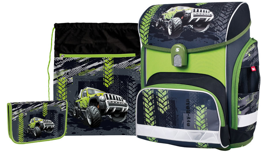 Školní set obsahuje: školní aktovka, penál 1 - zip, sáček na cvičky. Popis jednotlivých položek setu: 1. Školní aktovka - kvalitní, ergonomicky tvarovaná odlehčená školní batoh je vybaven reflexními prvky a anatomicky tvarovanými zády s pevnou konstrukcí. 2. Školní penál jednopatrový, prázdný s dvěma chlopněmi, o rozměru š.195 x v.35 x h.130mm 3. Školní sáček na cvičky vhodný pro žáky 1. stupně ZŠ vyroben z pevného, kvalitního materiálu. Rozměr sáčku na přezůvky 440 x 320mm.