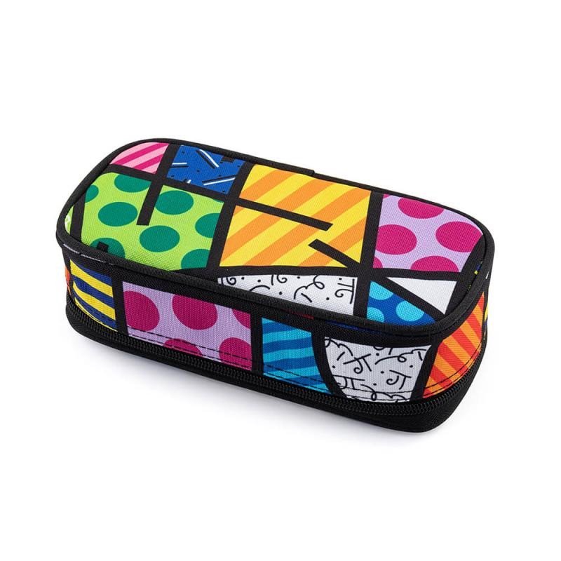 Jednokomorový studentský penál, dvojitá přepážka, spousta gumových úchytů, kapsičky uvnitř penálu. Design ve spolupráci se známým brazilským umělcem Romero Brittem.