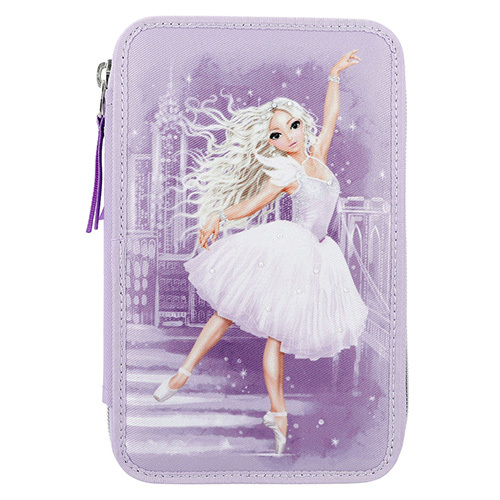 Penál 3 patra s výbavou Top Model, Fialový s baletkou