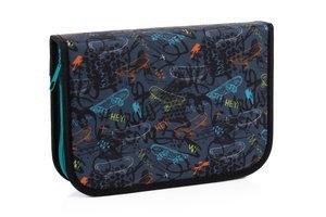 Jednopatrové penály mají velkou kapacitu k umístění psacích potřeb. 23 pevných gumiček různých velikostí k pohodlnému uložení větších pastelek nebo psacího pera, pravítka, ořezávátka a gumy. Vnitřní dvě chlopně mají na vnější straně průhlednou kapsičku na