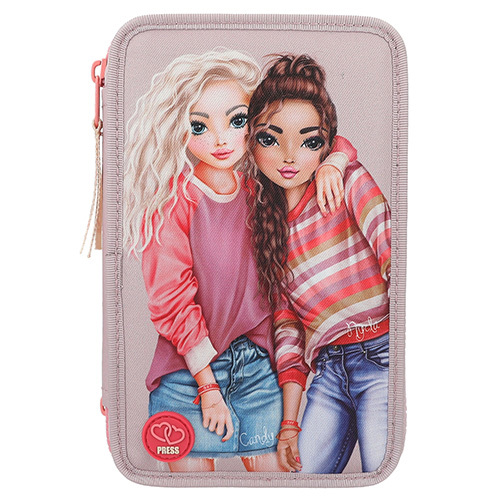 Praktický třípatrový školní penál vyrobený z kvalitního materiálu odolného proti běžnému opotřebení. Jedinečná náplň penálu nabízí - 2 tužky, 18 pastelek, 18 fixů, nůžky, lepidlo, pravítko, ořezávátko, gumu a kapsičku.Při stisknutí tlačítka Press se krásně rozsvítí srdíčka na tričkách.Penál nabízí dostatečný vnitřní prostor postačující potřebám mladších i starších školaček.Spolehlivé bezporuchové zapínání na zip a originální stylový design značky Top Model vytvořily z tohoto penálu oblíbenou školní pomůcku.Materiálové složení: 100% polyester.Rozměry penálu: 20 x 13 x 7,5 cm.Vhodné pro dětiod 3 let.