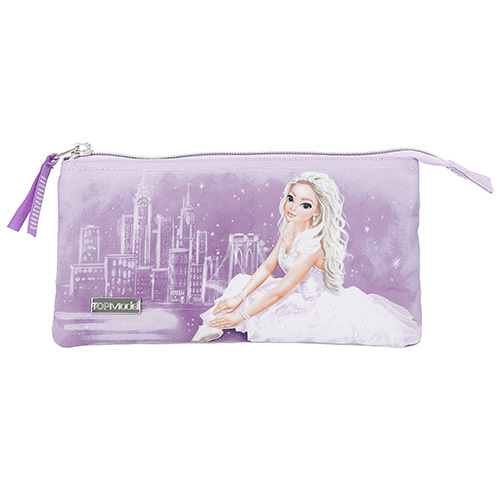 Školní penál taštička Top Model, Fialová, s baletkou, 3 přihrádky